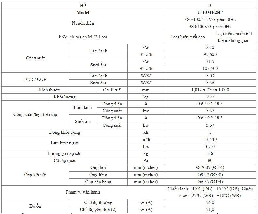 Điều Hòa Trung Tâm Panasonic FSV-EX U-10ME2H7 10 HP 2 Chiều